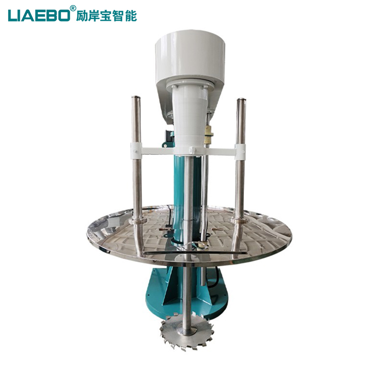帶升降蓋液壓分散機主要是針對不同粘度漿狀的液體原料進行粉碎、分散、乳化、混合,通過分散盤上下鋸齒的高速運轉(zhuǎn)的新型高效攪拌設(shè)備,對物料進行高速的強烈的剪切、撞擊、粉碎、分散,達到迅速混合、溶解、分散、細化的功能。帶升降蓋液壓分散機通過高速運轉(zhuǎn),使物料呈環(huán)狀流,產(chǎn)生強旋渦,呈螺旋狀下降到渦流底部。粒子間產(chǎn)生強烈的剪切撞擊與磨擦,達到迅速分散、溶解功能。 可選配PTFE刮壁器貼合桶壁旋轉(zhuǎn),對桶壁進行刮拭,解決了物料掛壁的問題,同時加快了物料的循環(huán) ,通過液壓泵工作驅(qū)動液壓柱塞升降,帶動整個傳動機構(gòu)和工作組升降,氣動升降蓋子的設(shè)計適合不同高度的料筒使用同一臺機器完成,并帶有氣動掀蓋功能方便喂料,減少工人勞動強度。